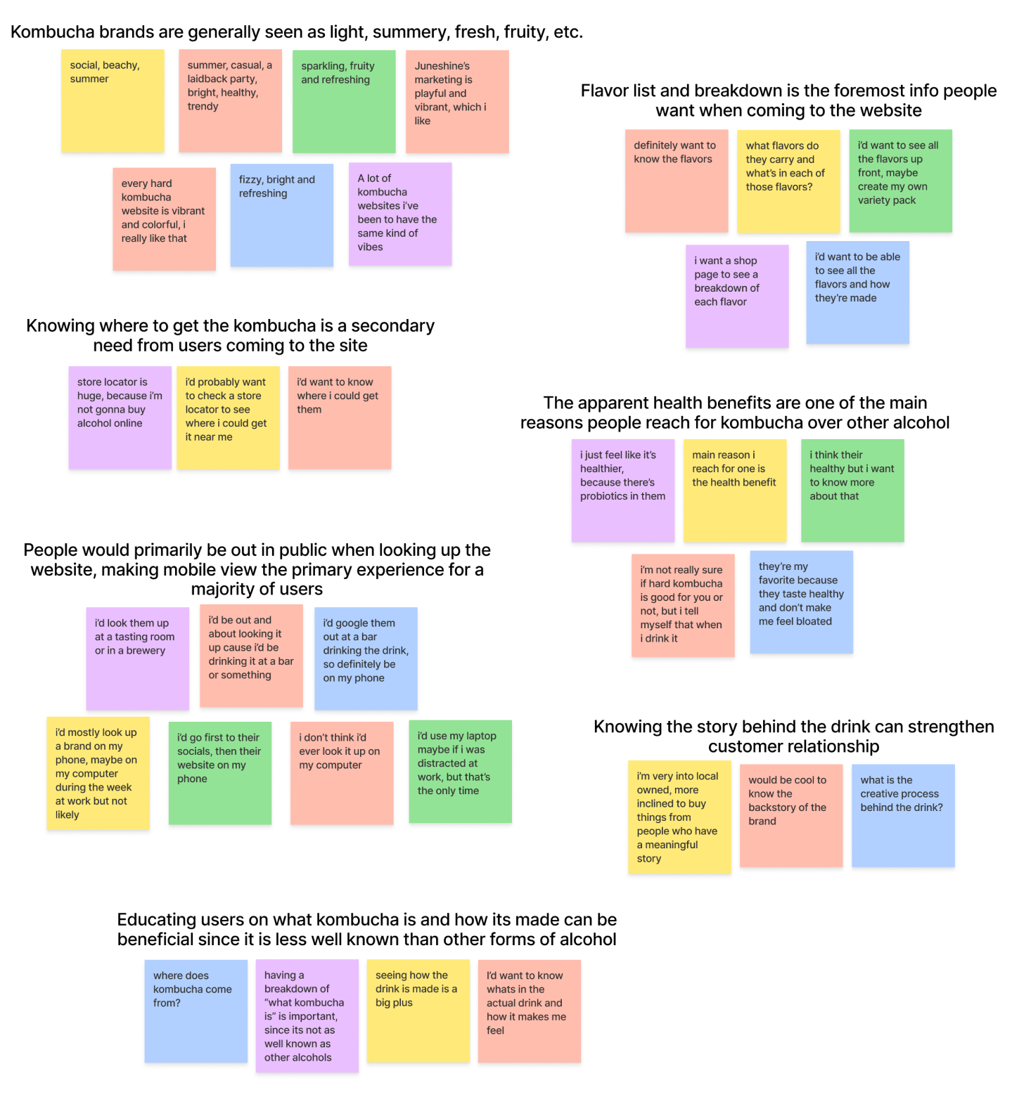 These users might have different priorities in regards to what they expect out of a kombucha website. It is important to make sure both of their needs are met without hindering the experience of the other. Freddy probably doesn’t need to be educated about what kombucha is, just as Nina might not care about the brand story.